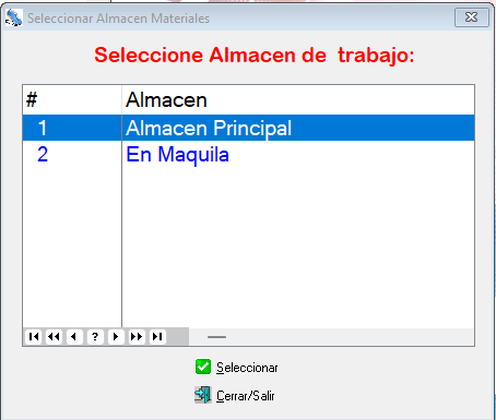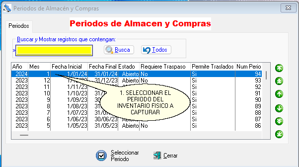1. Seleccione periodo del almacen: